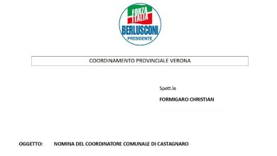 Castagnaro, è Formigaro il nuovo coordinatore locale di Forza Italia